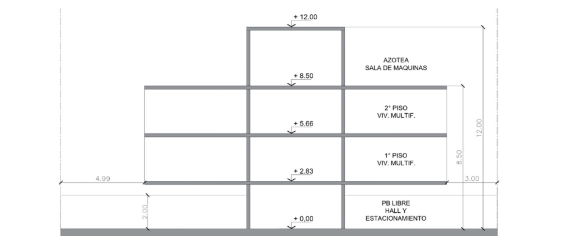 El parcelamiento exige un ancho mínimo de 12 m y una superficie mínima de 300 m², garantizando un entorno amplio y equilibrado. Los retiros de frente se establecen en 3 m, mientras que las alturas máximas son de 8,50 m en la zona de uso común y hasta 10 m en el plano límite, con 12 m para tanques, lo que permite una planificación flexible y acorde a las normativas de altura.