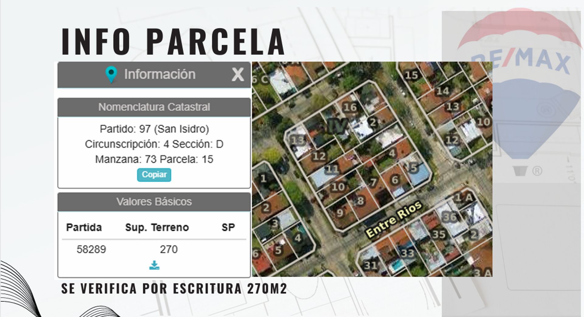 Lote de 270 m² ubicado en una zona residencial consolidada de Martínez, Partido de San Isidro. Se encuentra a pocos pasos de Av. Fleming y Av. Santa Fe, a dos cuadras del Hipódromo de San Isidro, con acceso inmediato a Panamericana y cercanía a centros comerciales, colegios, clubes y líneas de transporte.