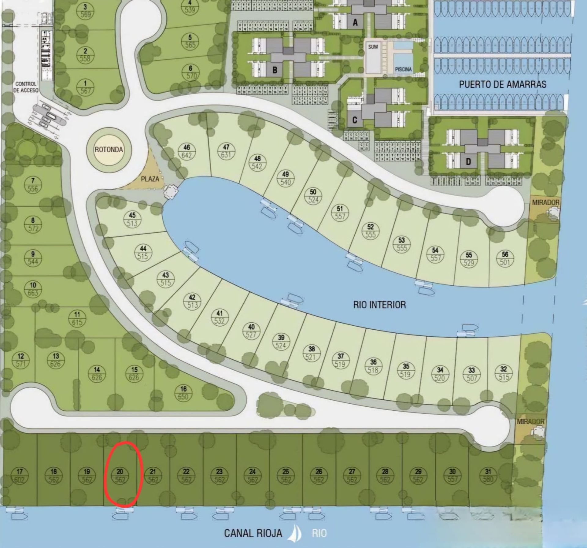 Excelente lote de 562 metros cuadrados con salida directa al río, ubicado en el barrio náutico El Canal sobre el Canal La Rioja. La propiedad se sitúa en un entorno consolidado y cuenta con una orientación ideal: fondo al río con dirección sureste (SE) y frente al río con dirección noroeste (NO).
