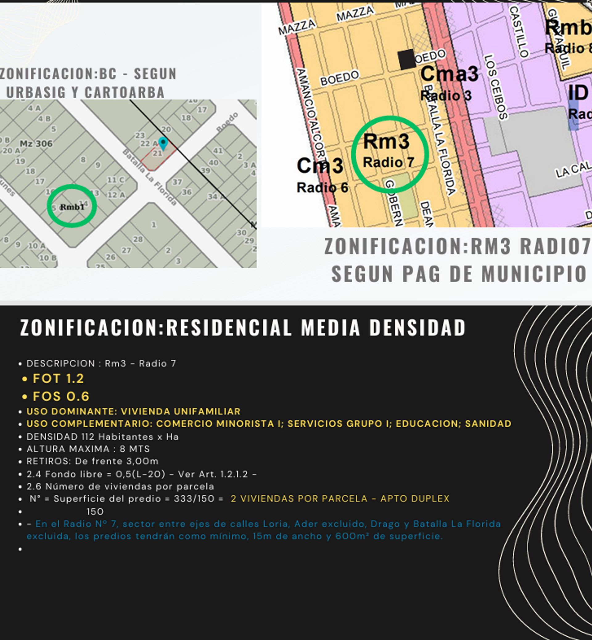 Lote en esquina de la avenida Batalla de la Florida con la calle Boedo, en el barrio Boulogne, San Isidro. La parcela permite la construcción de dos viviendas unifamiliares tipo dúplex, aprovechando al máximo el espacio disponible.
