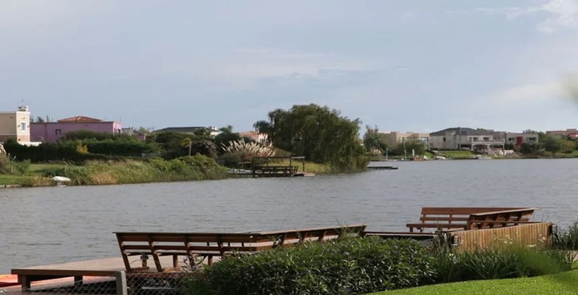 El entorno del barrio cuenta con más de 600 casas construidas sobre 872 lotes, calles arboladas y amplias, creando una atmósfera tranquila y visualmente atractiva. Dos lagunas y extensos espacios verdes complementan la zona, junto con un puerto con amarras y una guardería náutica que permite acceso directo al Río Luján.
