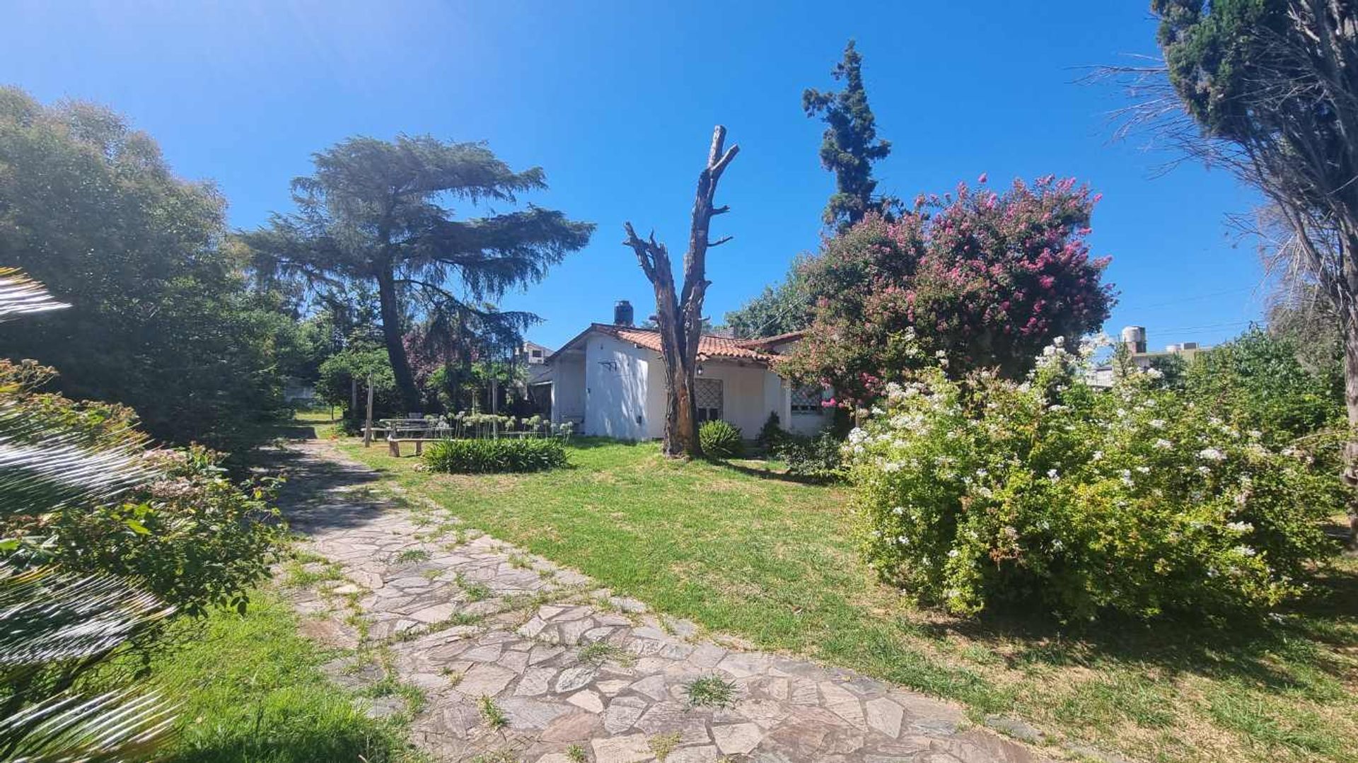 En la parcela se encuentran dos construcciones: una vivienda de una sola planta situada en el lateral derecho y un quincho con piscina en la parte trasera. Esta configuración brinda un equilibrio perfecto entre espacio residencial y amenidades recreativas, ideal para quienes buscan comodidad y calidad de vida.