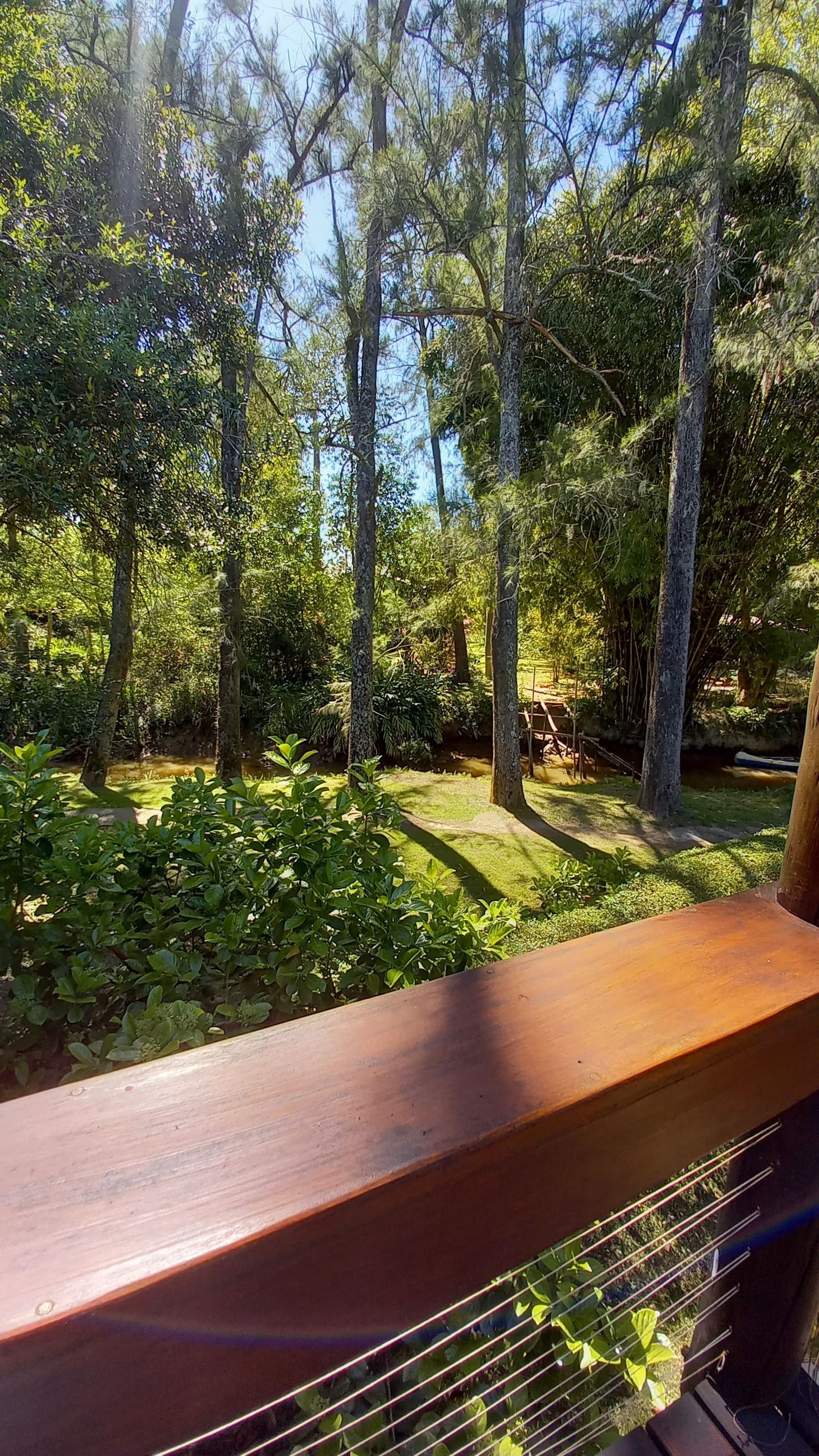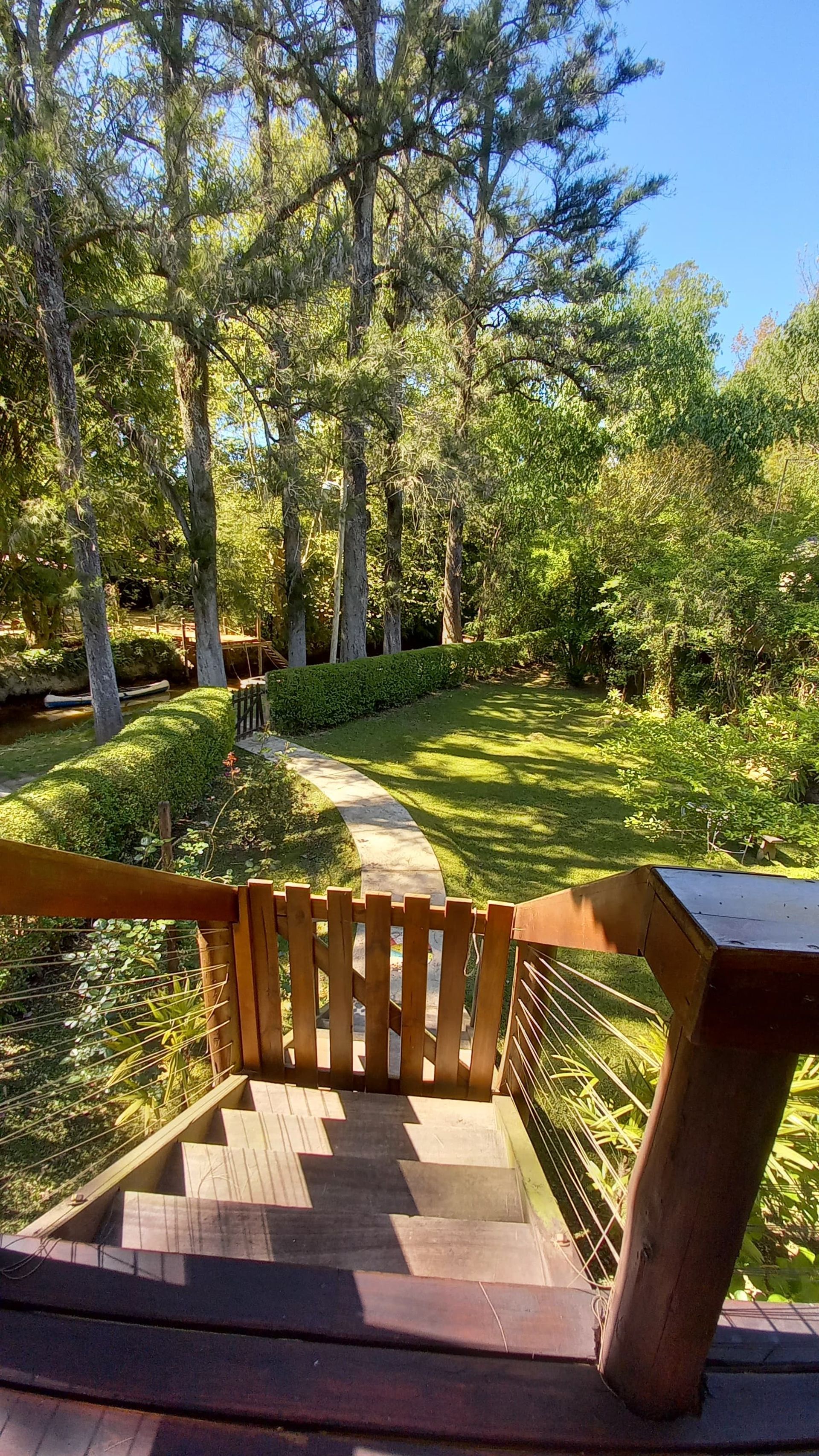 Terraza de madera y techo de paja, un refugio que abraza la naturaleza del Delta del Tigre, en la zona de Arroyo Felipe.